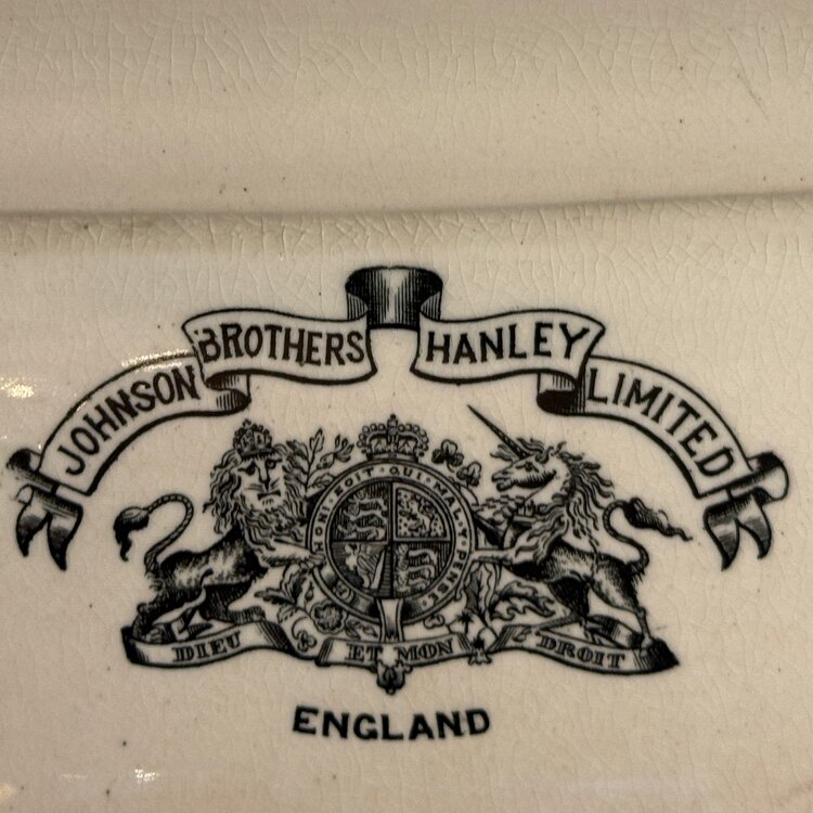 The stamp with the royal coat of arms was used primarily in the early 20th century, approximately 1910–1930. Johnson Brothers, based in Hanley, Stoke-on-Trent, became internationally renowned for high-quality ceramic production. While best known for tableware exported across Europe and the British Empire, the company also produced sanitary ware during this period, maintaining the same standard of durability and refined glazing.