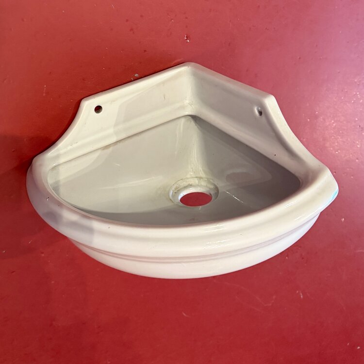 Antique corner basin made by the Sphinx potteries. Small corner basin.