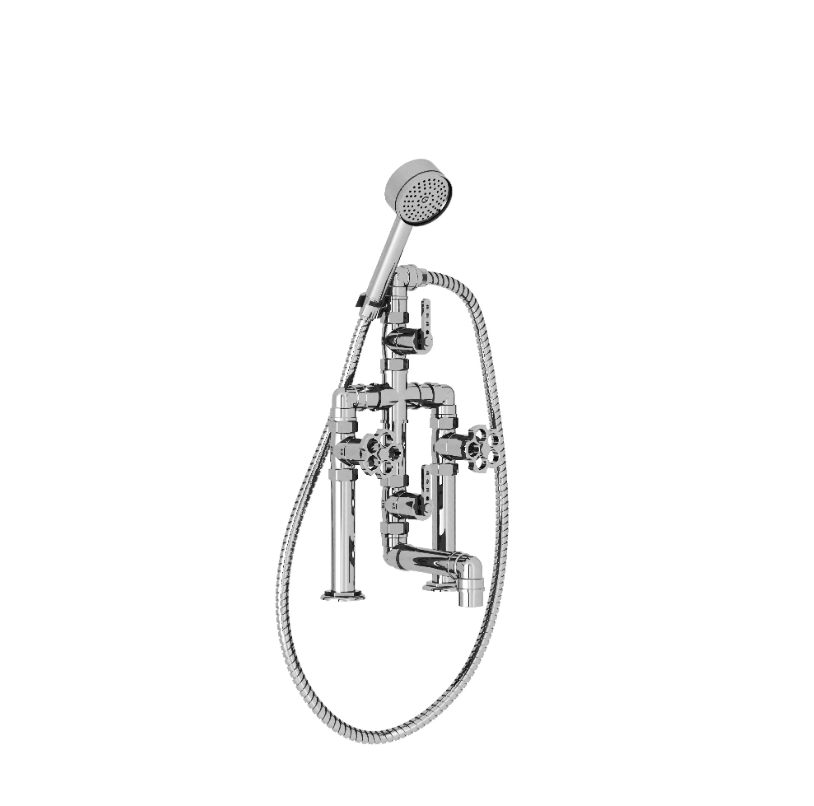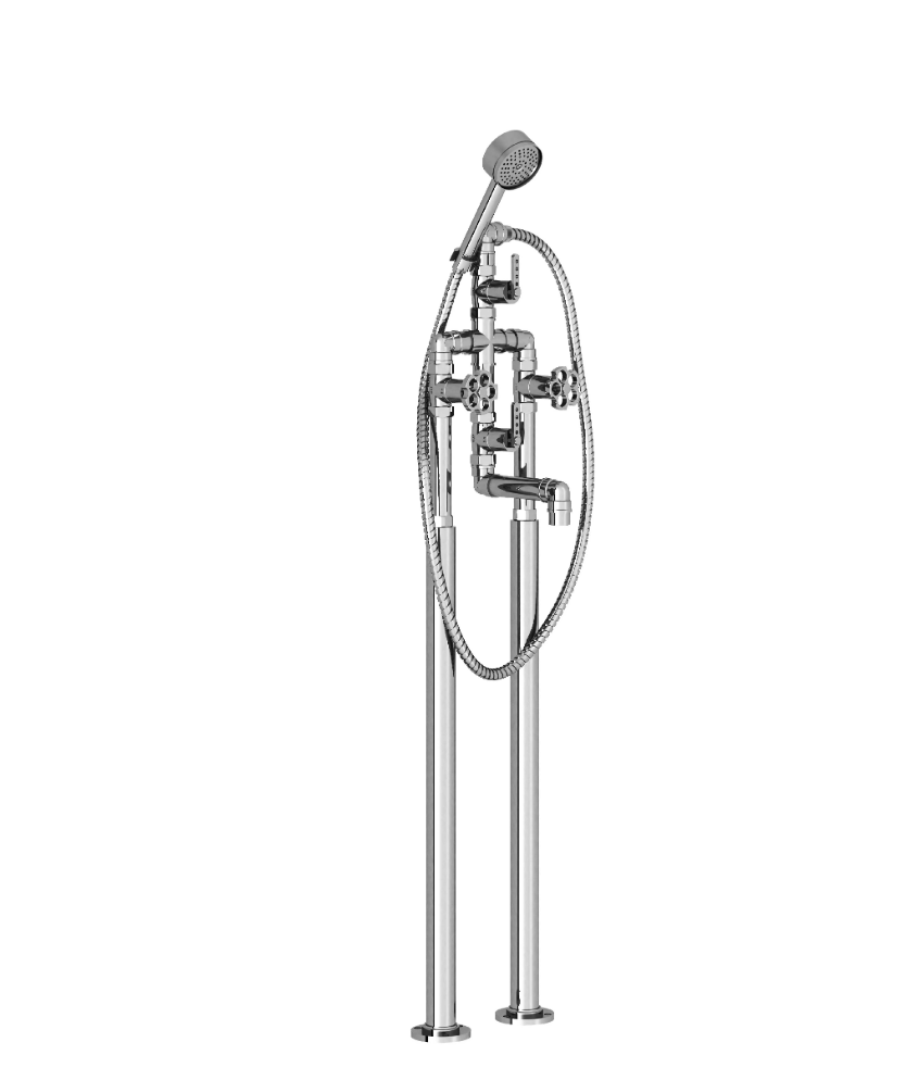 This bath mixer forms a striking centrepiece in bathrooms with a strong industrial or classic aesthetic, blending functionality with historical inspiration.