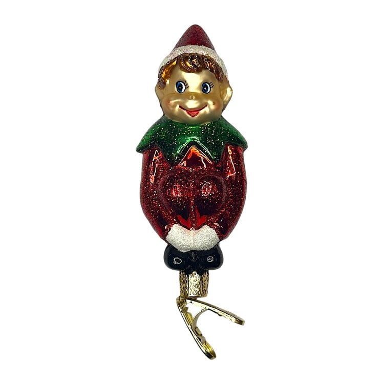 Little elf ornament. Christmas decorations in beautiful thick and richly coloured hand-painted glass.