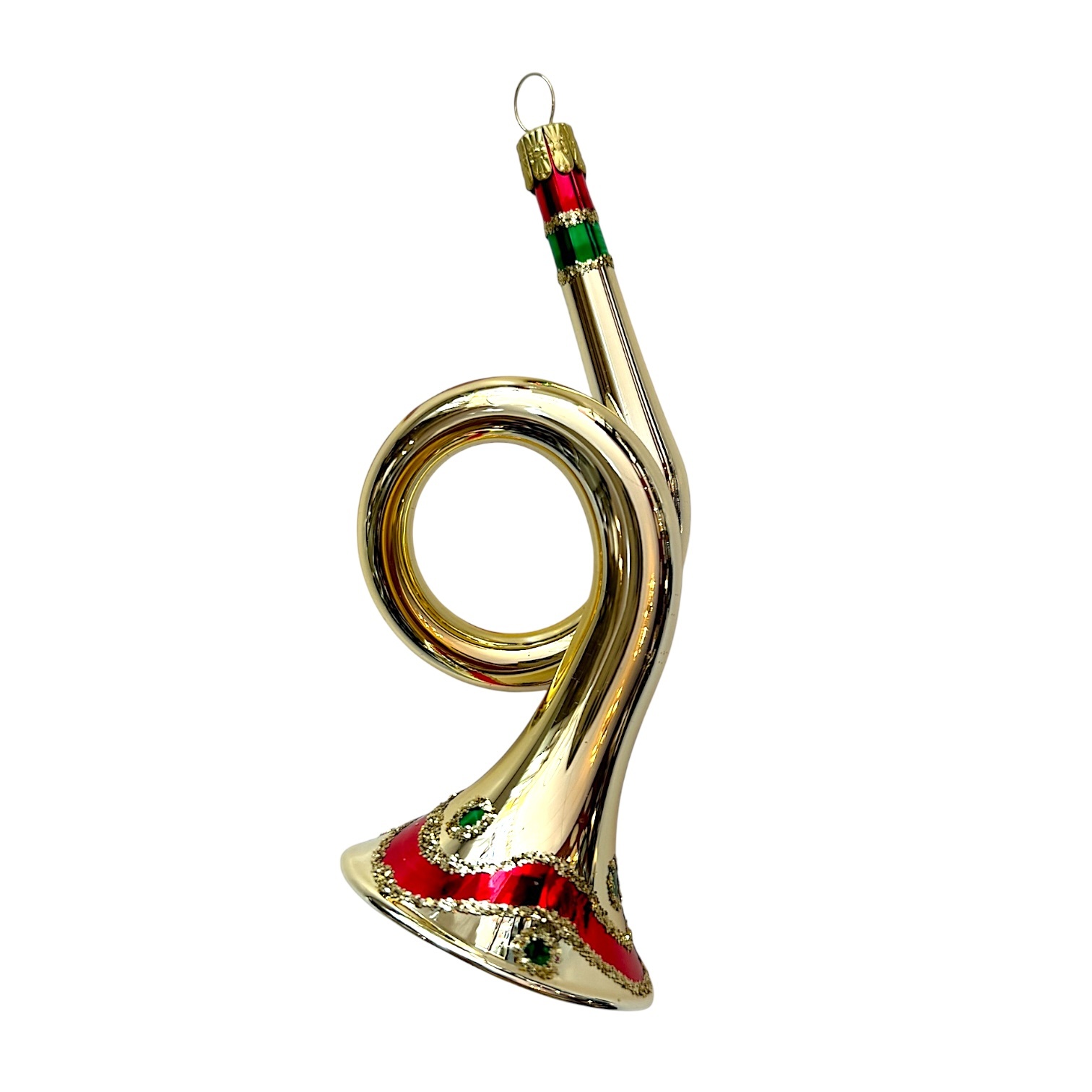A true vintage classic: this curled trumpet ornament is one of the earliest forms ever made in traditional Christmas glassblowing. Carefully shaped by hand from freely blown glass, it brings back the charm of the earliest holiday decorations.