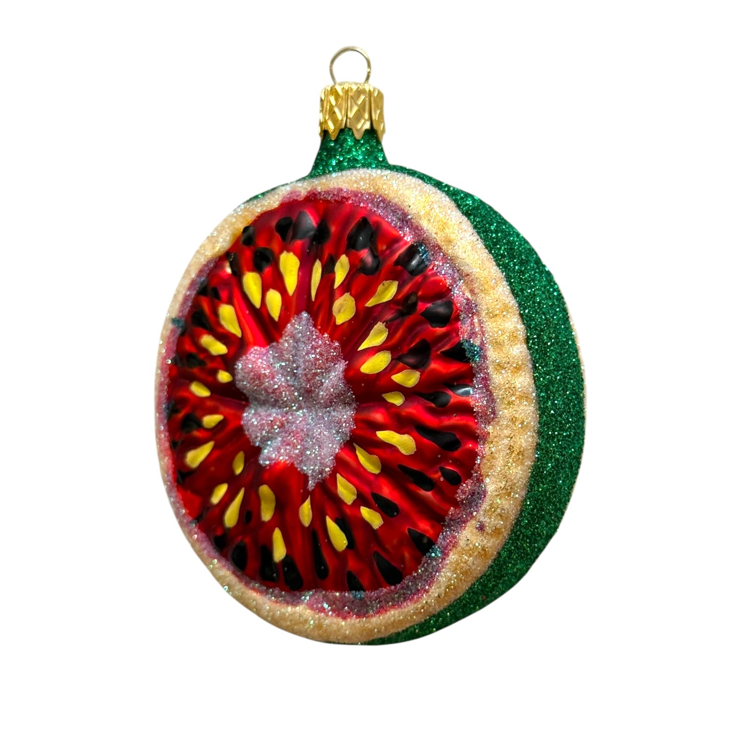 Decorating the tree with fruit and vegetables is a tradition dating back centuries. In the 19th century, people hung real fruits, nuts, and sweets in their trees. Today, that custom lives on in finely crafted glass ornaments like this melon slice. A perfect pick for anyone with a themed tree with Vegetables and fruit or a fondness for whimsical, eye-catching Christmas decorations.