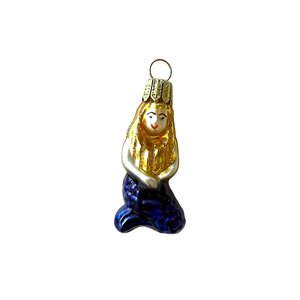 A mermaid in the Christmas tree! A charming small Christmas ornament in the shape of an elegant mermaid. Perfect for those who love the sea, fairytales, and magical Christmas themes. The mermaid features beautiful hand-painted details with shimmering accents and a gracefully curved tail. Ideal for a nautical Christmas theme or as a playful touch in your Christmas tree.