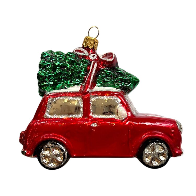A Mini in the Christmas tree! Add a touch of classic style and playfulness to your Christmas tree with this red Mini Christmas bauble! This adorable ornament pays homage to the iconic Mini Cooper, a car known around the world for its compact design and timeless charm.