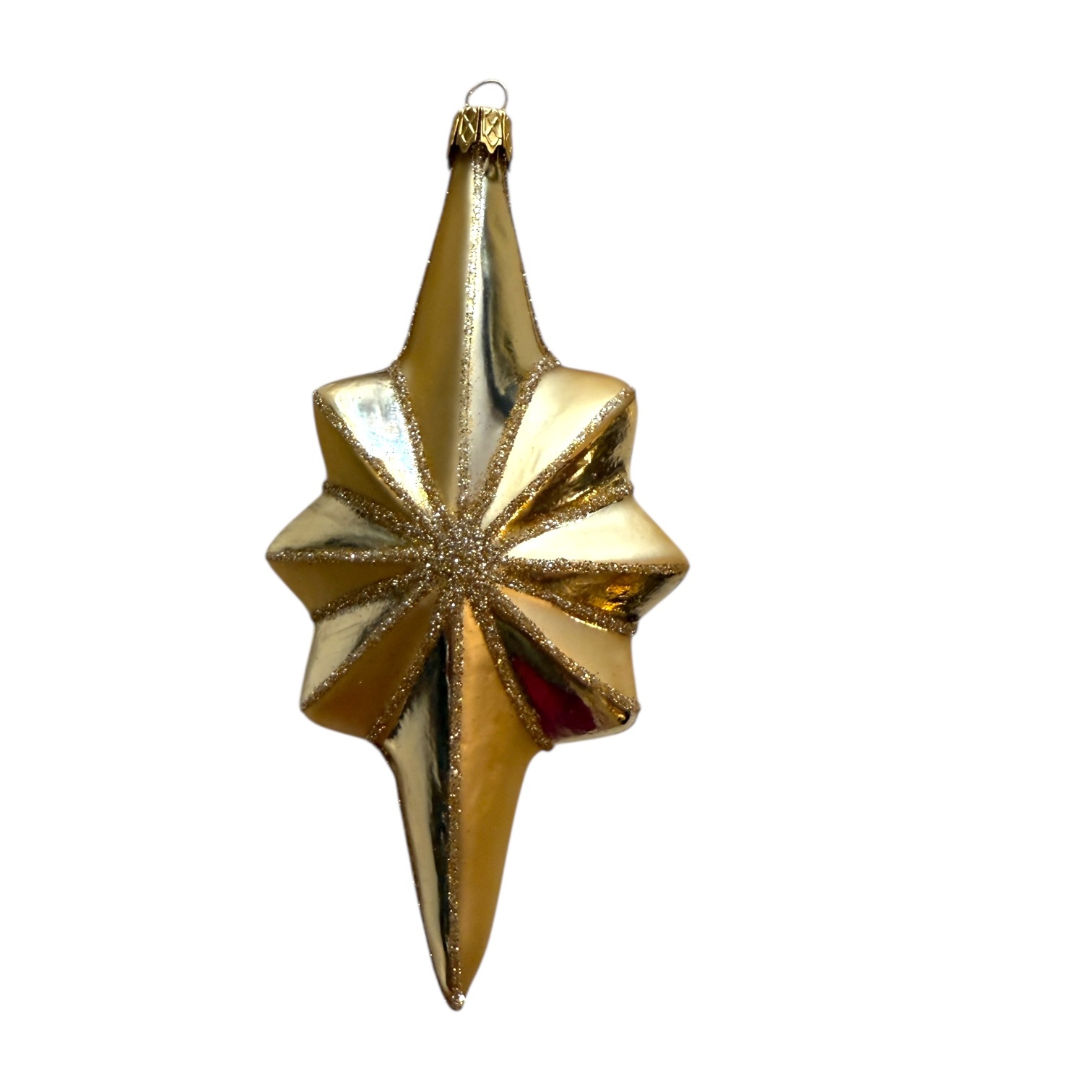 This beautiful gold Christmas decoration in the shape of a Polar Star shines like a guiding light in your Christmas tree. The North Star has long been a symbol of direction and stability – used for centuries by travelers and seafarers to find their way in the night.