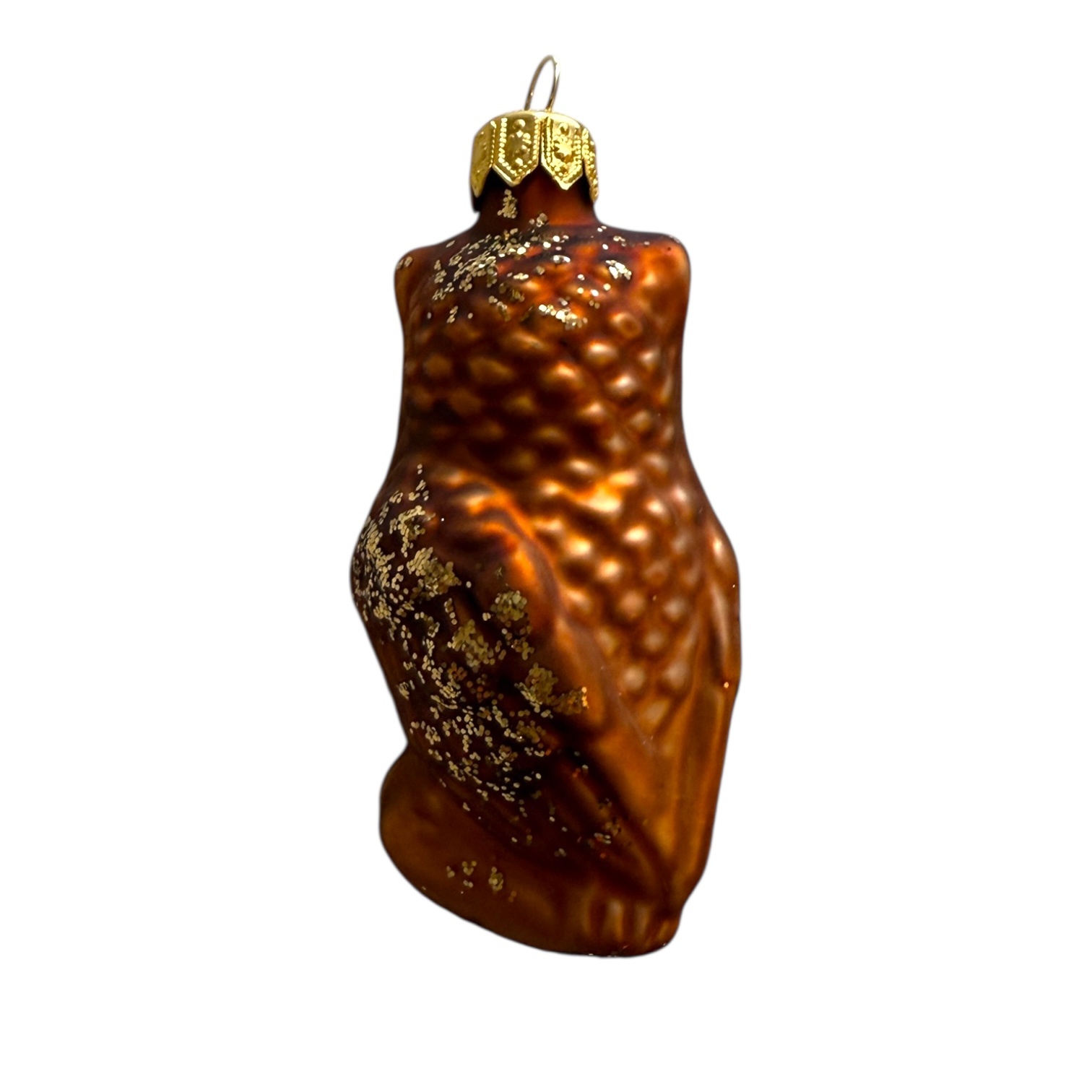 A classic little owl in warm gold-brown tones – this is a Christmas ornament full of history. The shape dates back to the 1930s, when owls and woodland creatures were beloved motifs in traditional European tree decorations. The owl symbolises wisdom and quiet watchfulness, making it a perfect addition to any nostalgic Christmas tree. It blends beautifully in woodland-themed trees or as a striking figure among twinkling stars.