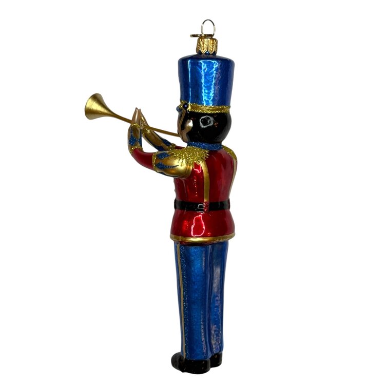 Little soldier with a trumpet in the Christmas tree! This charming soldier with his raised trumpet looks ready to herald in the holidays. Inspired by antique toys and classic nutcracker figures, it’s detailed in rich colours and crafted in true vintage style. A festive addition to any tree with red and gold tones or a nostalgic theme.