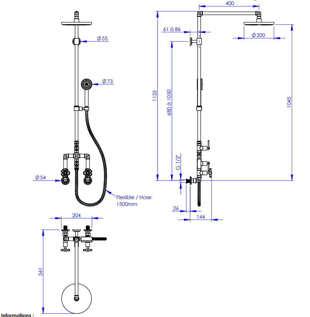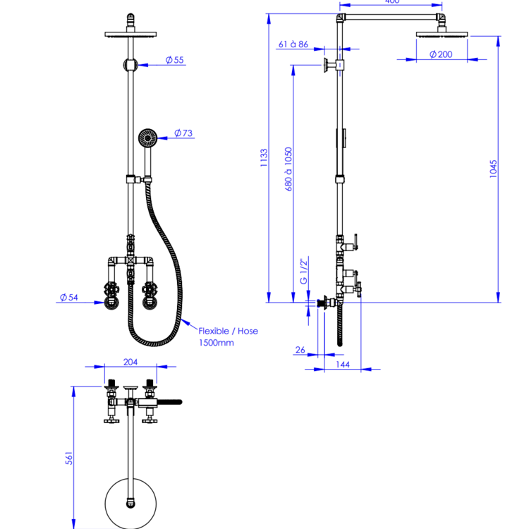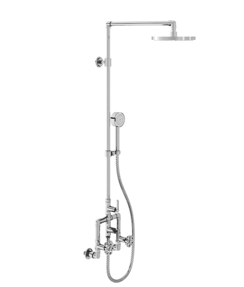 This rain shower combines high-quality finishing with ceramic cartridges for durable and comfortable use. It fits beautifully in bathrooms where a subtle nod to the past meets a modern, robust aesthetic.