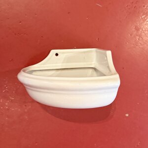 Dit zeldzame antieke hoekfonteintje van Sphinx is het allerkleinste porseleinen hoekmodel dat ooit werd gemaakt. Een juweeltje van vakmanschap, uitgevoerd in een elegante vorm met een subtiel gebogen rand die het water terugleidt naar de afvoer – een verfijnd detail dat typerend is voor de hoge kwaliteit van vroeg 20e-eeuws sanitair.