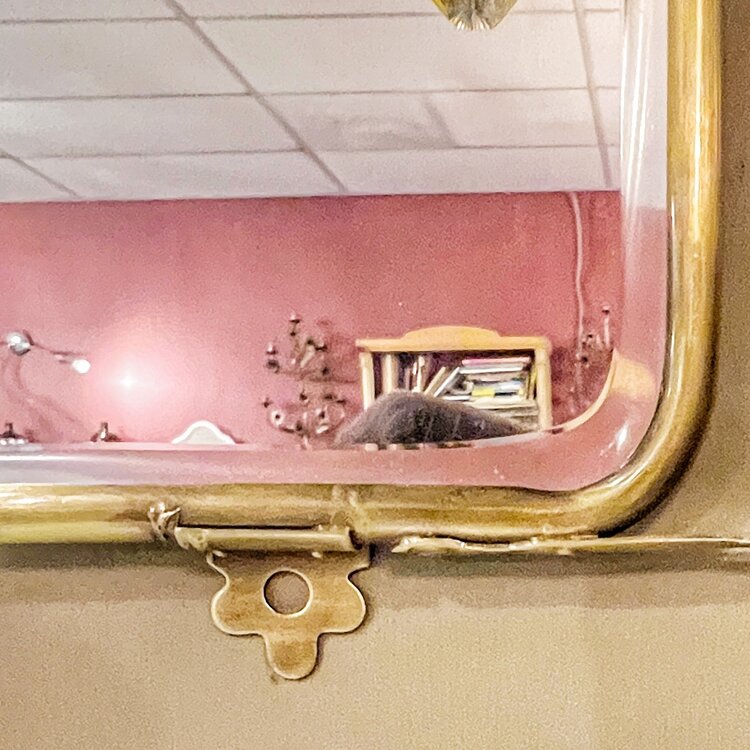 - Facet geslepen spiegel: Alle drie de spiegels hebben klassieke afgeschuinde randen, een kenmerk van die tijd