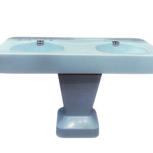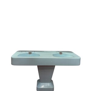 Uitzonderlijk Zeldzame Powder Blue Dubbele Mid-Century Wastafel met Sokkel | Retro Badkamermeubel uit de Jaren 50