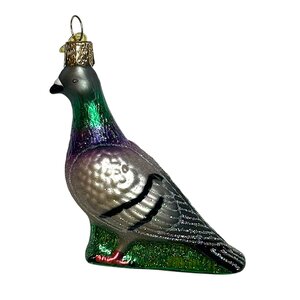 Als symbool van vreugde en geluk mag een vogel in de kerstboom niet ontbreken. Deze prachtige doffer – een sierlijke postduif met glanzende halsveren in paarlemoertinten – straalt rust en waardigheid uit. In veel culturen staat de duif symbool voor vrede, trouw en thuiskomst. Deze kerstbal is dan ook meer dan decoratie: het is een teken van verbondenheid en hoop. Een tijdloos symbool, uitgevoerd in glas met de hand beschilderd.