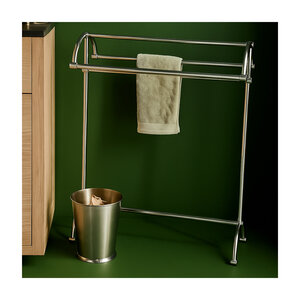 Dit stevige, vrijstaande handdoekrek is uitgevoerd in de afwerking nickel satine. Het ontwerp is geïnspireerd op vintage modellen en combineert stijl met functionaliteit. Het rek heeft vier horizontale staven, ideaal om handdoeken netjes overheen te hangen zodat ze goed kunnen drogen. Dankzij de rustige satijnen glans laat het zich moeiteloos combineren met zowel nikkel glans als RVS en chroom.Hoog Afmetingen