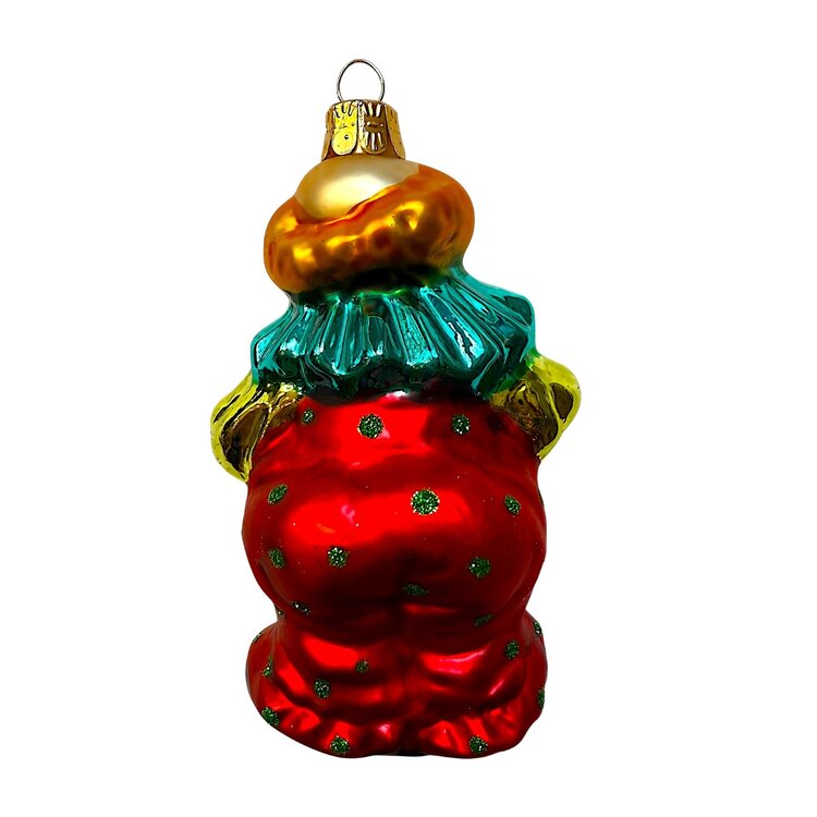 De Kerstbal Clown met Mondharmonica brengt direct een glimlach in de kerstboom. Deze vrolijke clown met zijn felgekleurde kostuum, gouden details en kleine mondharmonica past perfect in een circus kerstthema of een speelse, nostalgische kerstversiering. De glanzende verf en sprankelende glitter zorgen voor een feestelijke uitstraling, terwijl de mondgeblazen en met de hand beschilderde afwerking dit ornament uniek maakt. Ideaal voor liefhebbers van bijzondere, traditionele kerstballen in glas die de boom vullen met kleur, humor en nostalgie.