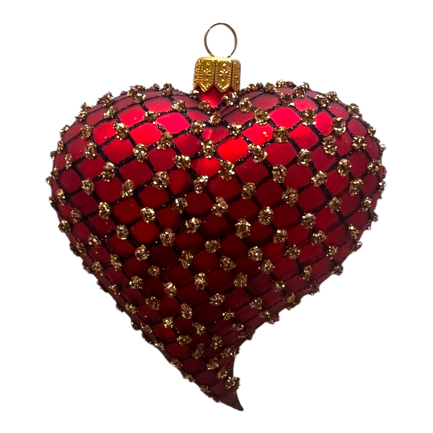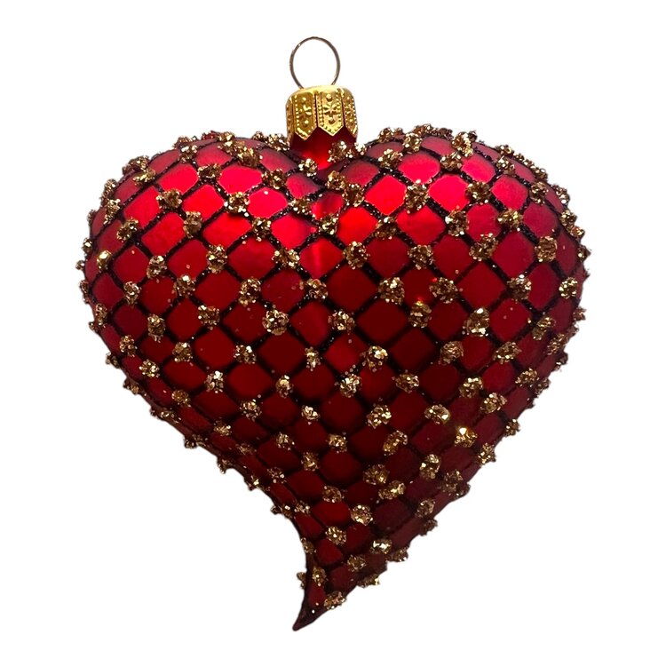 Hart kerstbal. Kerstversieringen van prachtig dik en kleurrijk glas, met de hand beschilderd.