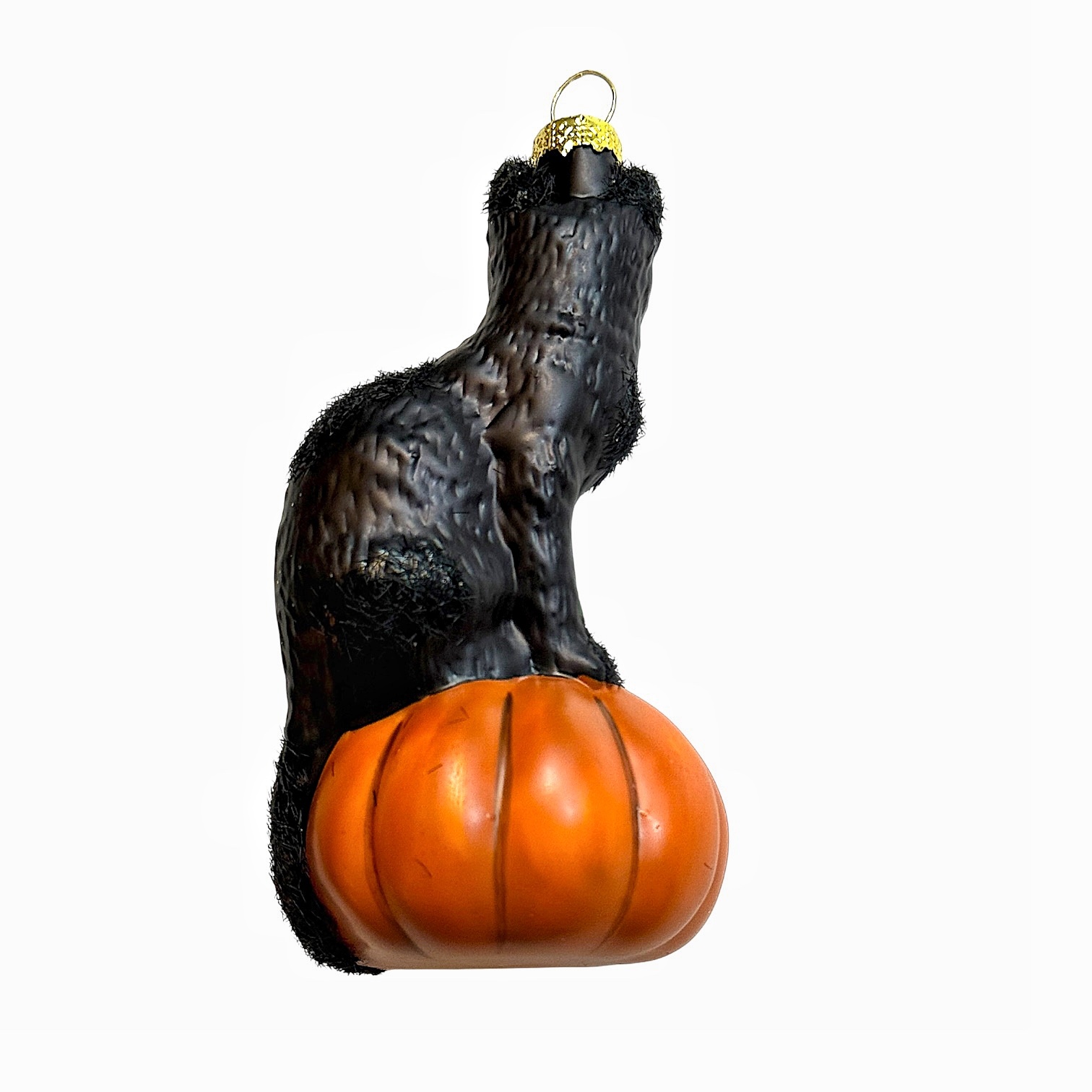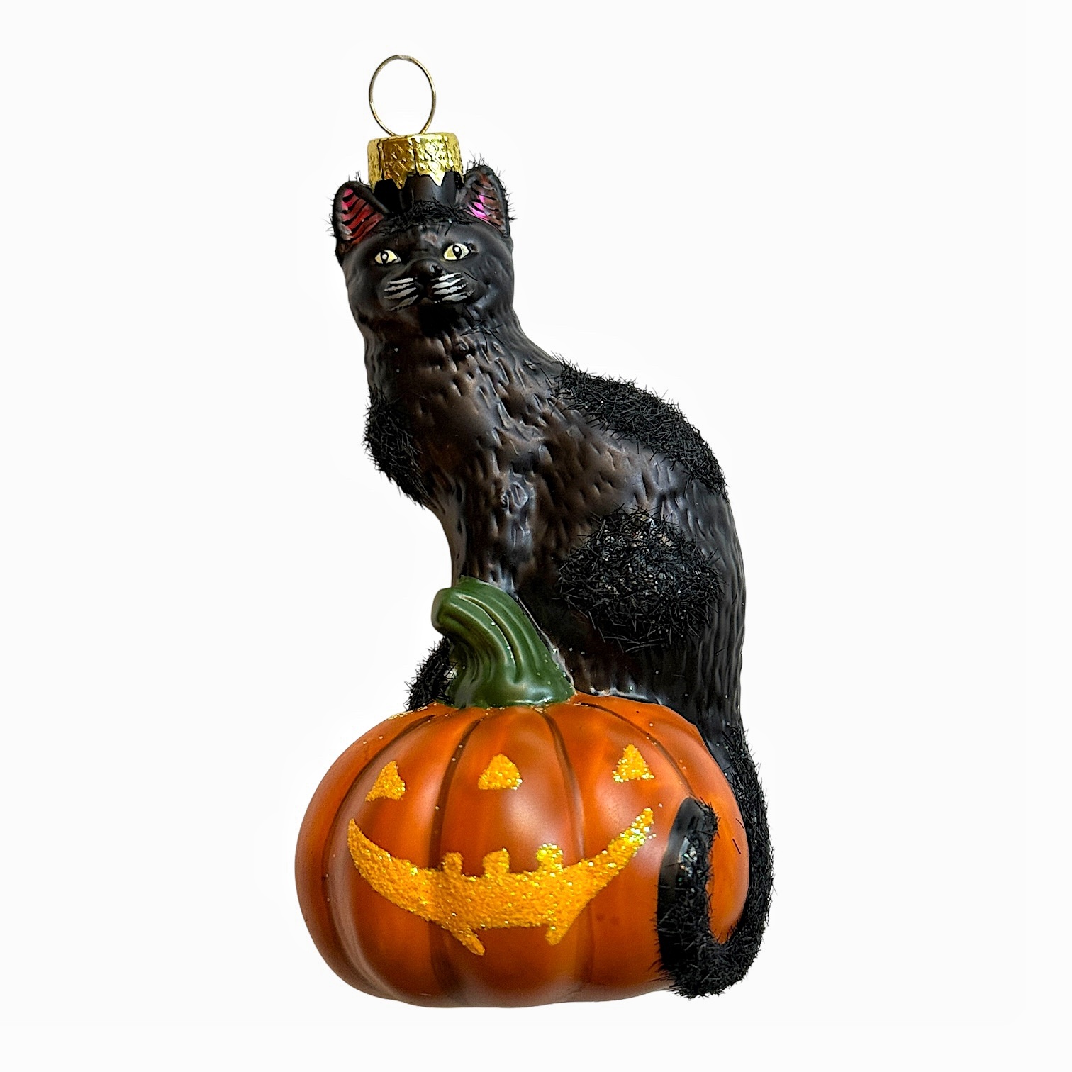 Een gitzwarte kat, elegant zittend op een pompoentje – deze kerstbal is een knipoog naar oude legendes, herfstige avonden en een vleugje mysterie. In veel Europese tradities werd de zwarte kat gezien als magisch of beschermend, en in combinatie met de warme gloed van de pompoen ontstaat een ornament vol sfeer en symboliek. Een prachtige keuze voor wie houdt van dieren, folklore of een tikkeltje eigenzinnige kerstversiering.