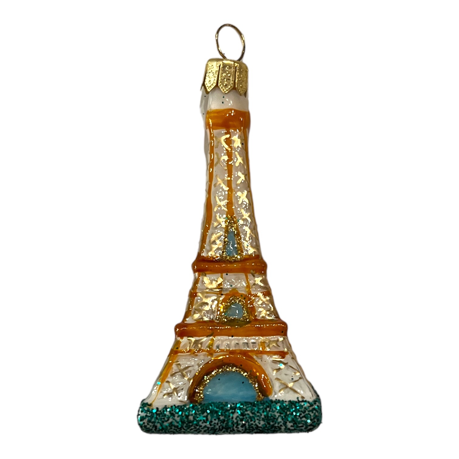 Eiffeltoren kerstbal. Kerstversieringen van prachtig dik en kleurrijk glas, met de hand beschilderd.