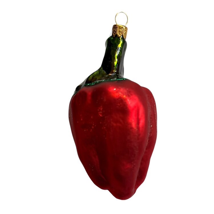 Paprika kerstbal. Kerstversieringen van prachtig dik en kleurrijk glas, met de hand beschilderd.