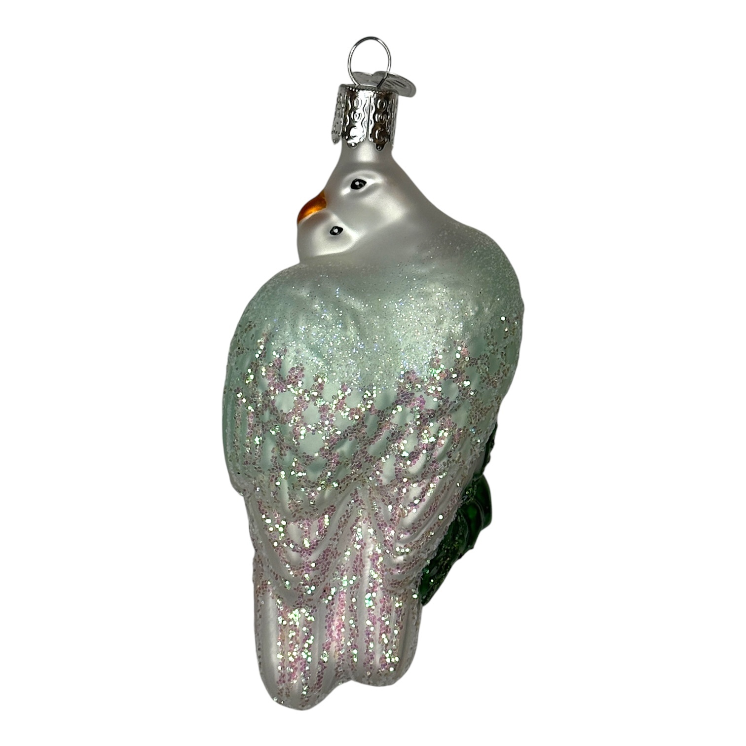 Als symbool van vreugde en geluk mag een vogel in de kerstboom niet ontbreken. De duif staat symbool voor vrede, de tortelduifjes voor eeuwige liefde. Twee tortelduifjes, zittend zij aan zij op een takje, met hun kopjes liefdevol naar elkaar toe – een tijdloos symbool van verbondenheid, trouw en liefde. Deze kerstbal straalt zachtheid en harmonie uit, perfect als romantisch ornament of als cadeau voor een bijzonder koppel. Met subtiele glitters op hun veren en warme kleuren is dit een van die kerstballen die direct het hart raakt.