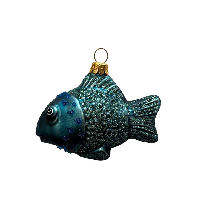 Vissen in de kerstboom! Prachtige glazen kerstornamenten voor een onderwaterwereld in de kerstboom. Elegant en mysterieus als de diepte van de oceaan – dit met de mond geblazen visje in diepblauw glas voegt een vleugje rust en verfijning toe aan je kerstdecoratie. De glanzende afwerking en subtiele details maken het tot een klein kunstwerkje voor in de boom. Perfect voor liefhebbers van maritieme sferen, nachtblauw kleurgebruik en minimalistische schoonheid.