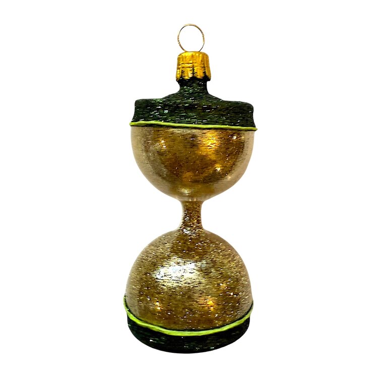 Waar blijft de tijd? Voor je het weet is het jaar weer voorbij, en haal je de dozen van zolder om je kerstboom opnieuw te vullen met dierbare ornamenten. Deze bijzondere kerstbal in de vorm van een zandloper herinnert ons aan het verstrijken van de tijd – aan vergankelijkheid, maar ook aan traditie en herhaling – net zoals de kerst elk jaar terugkeert.