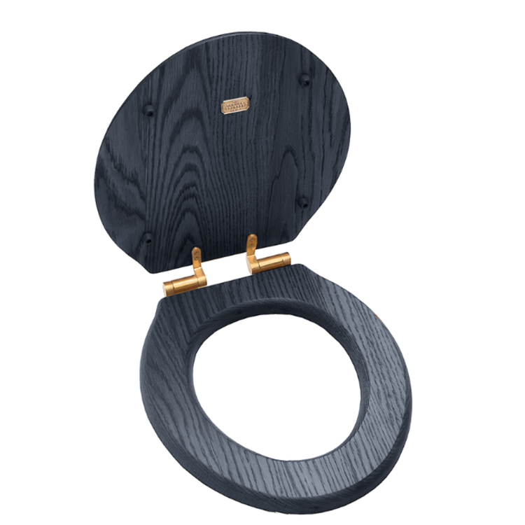 De klassieke houten toiletbril (Soft Close) van Thomas Crapper is verkrijgbaar in de volgende kleuren: Eiken, Mahonie, Wit, Zwart, Indigo Blauw, Bosgroen en Antracietgrijs. Alle varianten zijn leverbaar met gepolijste messing of zilverkleurige scharnieren. U kunt uw kleurkeuze maken via het keuzemenu.